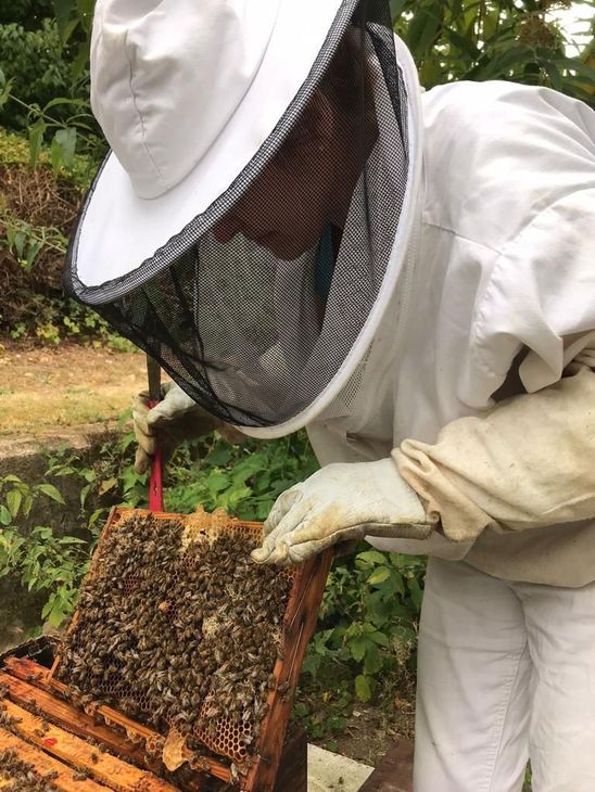 Um an den Bienen zu arbeiten, werden zunächst ein paar Rähmchen zur Seite gestellt...